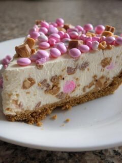 Pink M&M Snickers Cheesecake: 1 amazing dessert