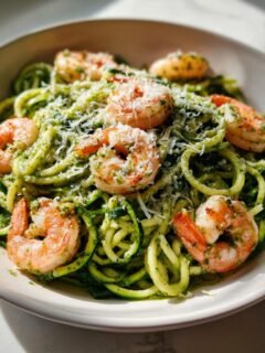 Zucchini Noodles with Pesto and Shrimp